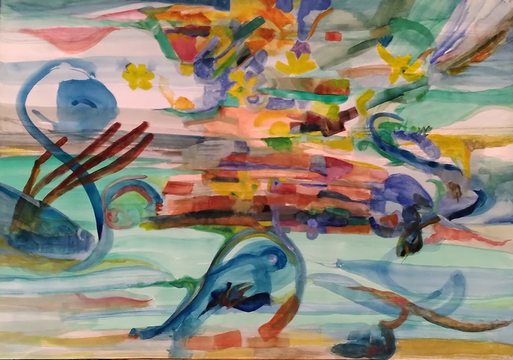 Je le reconnais maintenant dans sa présence silencieuse sous les affrontements quotidiens en accompagnement soutenu, en fluide, en liant, que je glisse dans mes peintures pour les faire avancer, elles aussi, vers l’inconnu, l’espéré.