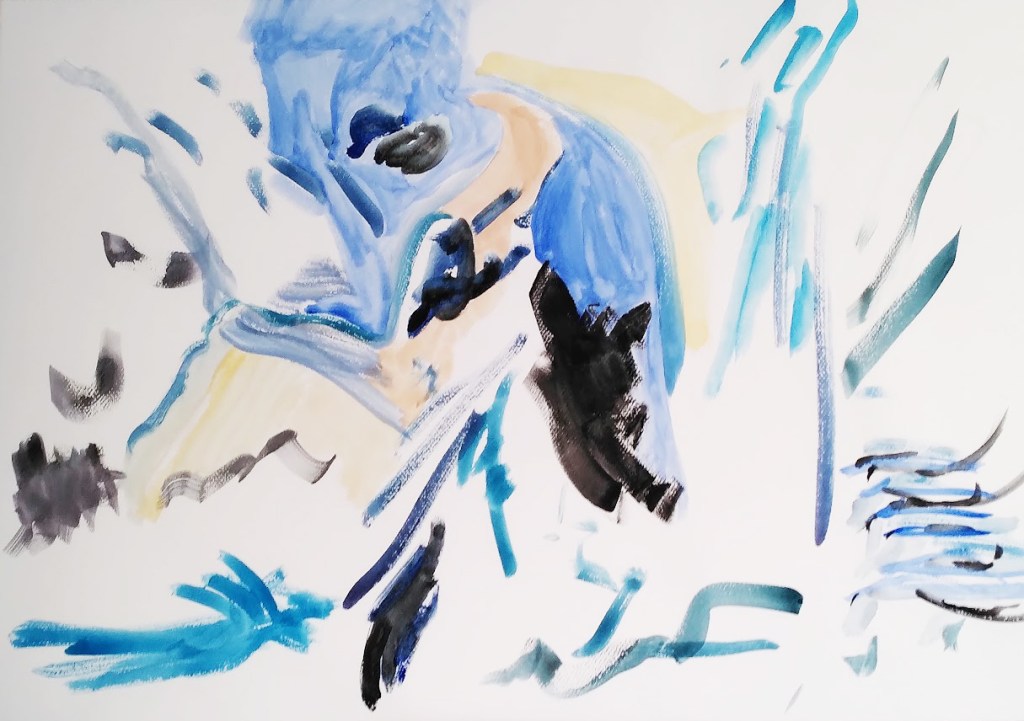 Mes contes hoffmanniens n’ont rien de romantique. C’est la couleur bleue qui domine. Je ne sais pas où je suis allé la chercher. Sur une haute montagne ou peut-être un océan. C’est là chez moi, je n’y suis jamais allé, tellement c’est haut, tellement c’est large, et profond, cet outremer. Ça n’a rien de métaphysique non plus, vous avez raison, vous qui m’avez repris un jour. Il n’y a que le Petit Prince qui peut-être a approché cette lumière. Et pourtant, elle est dans toutes mes peintures — ou peut-être la trompette de Louis, et la voix d’Ella… que ceux qui ont flotté au-dessus de la misère de l’humanité. Eh oui ils ont un Dieu, eh oui il est bleu, eh oui il joue de la trompette, du piano, de sa voix d’or. Et personne n’a jamais pu le faire rentrer dans le rang.